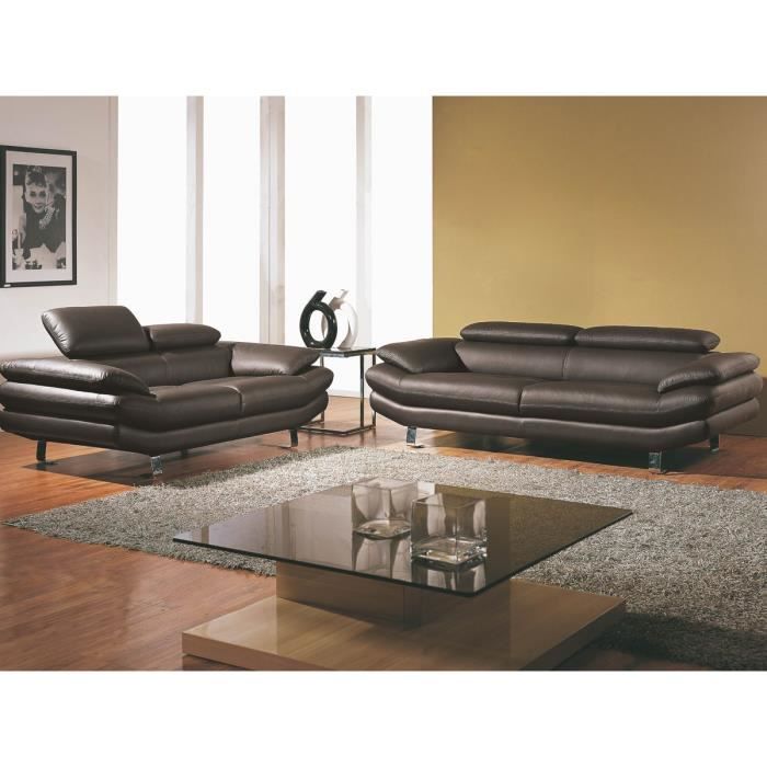Description canapé 2 places en cuir prestige marron CARLTON : Vous apprécierez ce canapé 2 places en cuir aux formes généreuses et au DESIGN unique. A la fois tendance sans oublier le confort, votre dos et votre nuque seront parfaitement maintenus grâce à ses appuie-têtes relevables. Le canapé 2 places en cuir CARLTON s’adaptera facilement à tous types d’intérieur.