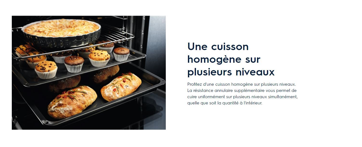 technologie de cuisson uniforme fait circuler l’air à travers le four assurant une cuisson homogène –