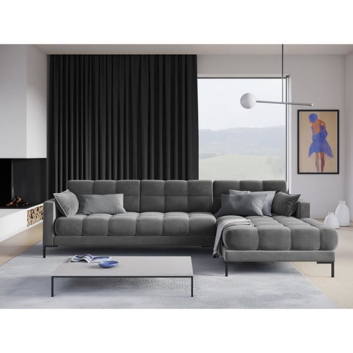 Canapé D’Angle Droit Velours, « Mamaia », 5 Places, Gris, 293x185x78 Fabriqué en Europe Tissus synthétique imitation velours, extrêmement doux et soyeux au toucher. Tissu solide, très bonne résistance à l’abrasion, répondant aux normes les plus exigeantes (Test Martindale 50000, 320g/ m2). Référence tissu: Blu 13 Composition: Ressorts Fr: Oui Densité Siège Fr: Mousse Polyuréthane Haute Résilience 35 kg/m³ Avec Ouate