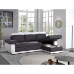 Points forts Bestmobilier Milan – Canapé d’angle réversible – 4 places – Convertible avec coffre – En simili et tissu Couleur – Blanc / Gris