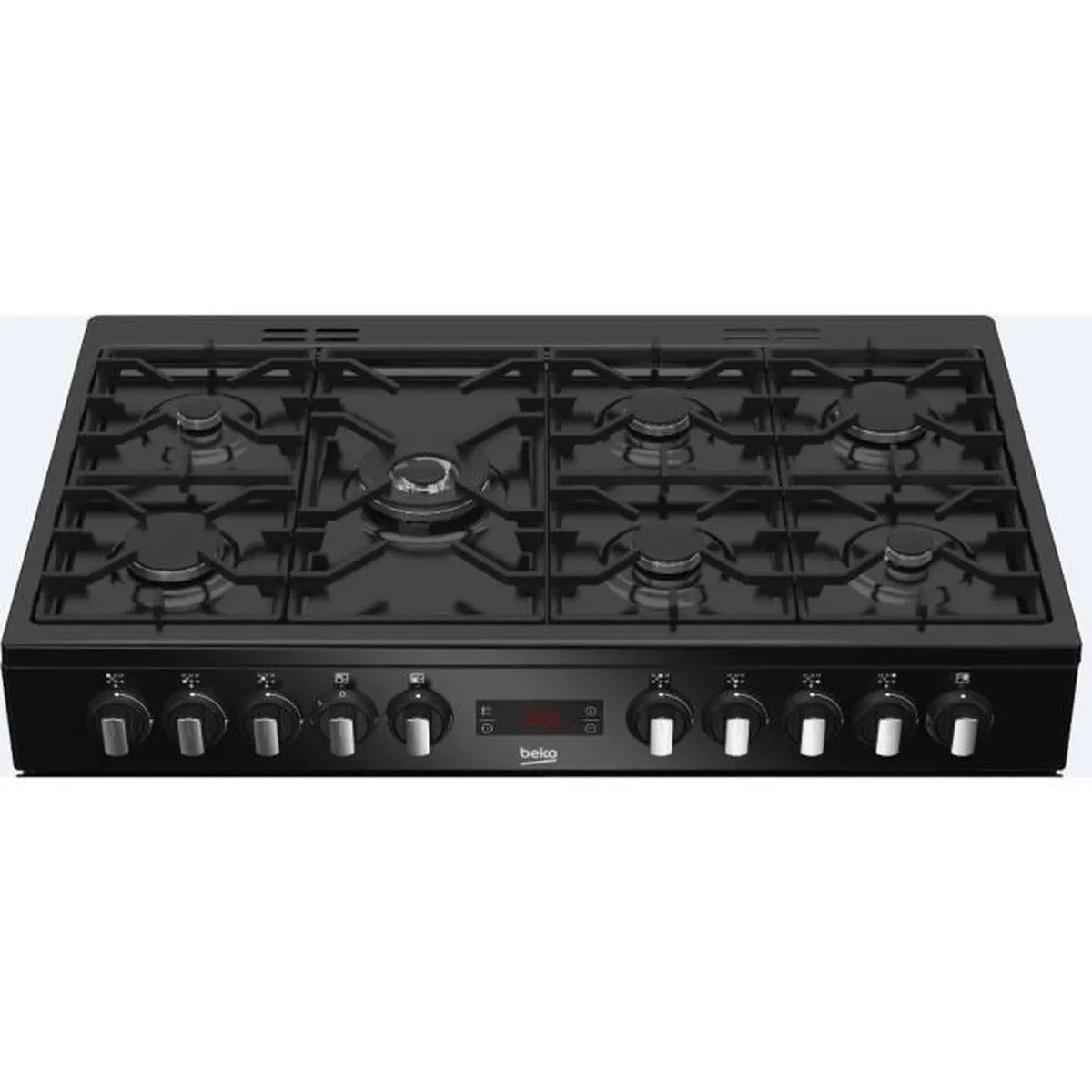 Beko – Piano de cuisson – 100 cm – 6 Gaz + 1 Wok – 31 L – Convection naturelle – Electrique – Multifour (3 fours) – Supports fonte – Wok double couronne – Gril électrique