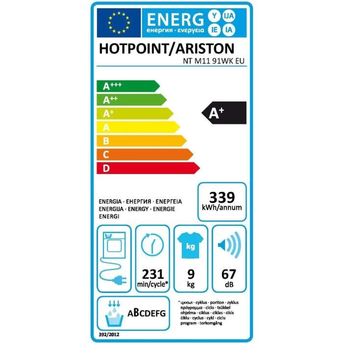 Sèche-linge pompe à chaleur HOTPOINT NTM1191WKEU – 9 kg – L60cm – Classe A+ – Blanc